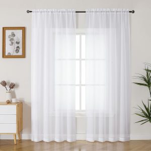Gwine White Sheer Curtains 84 Inches Long 2 Panels Set for Living Room, Rod Pocket Voile Bedroom Curtains, Light Filtering Solid Window Sheer Panels, Each 42″ Wx84 L
